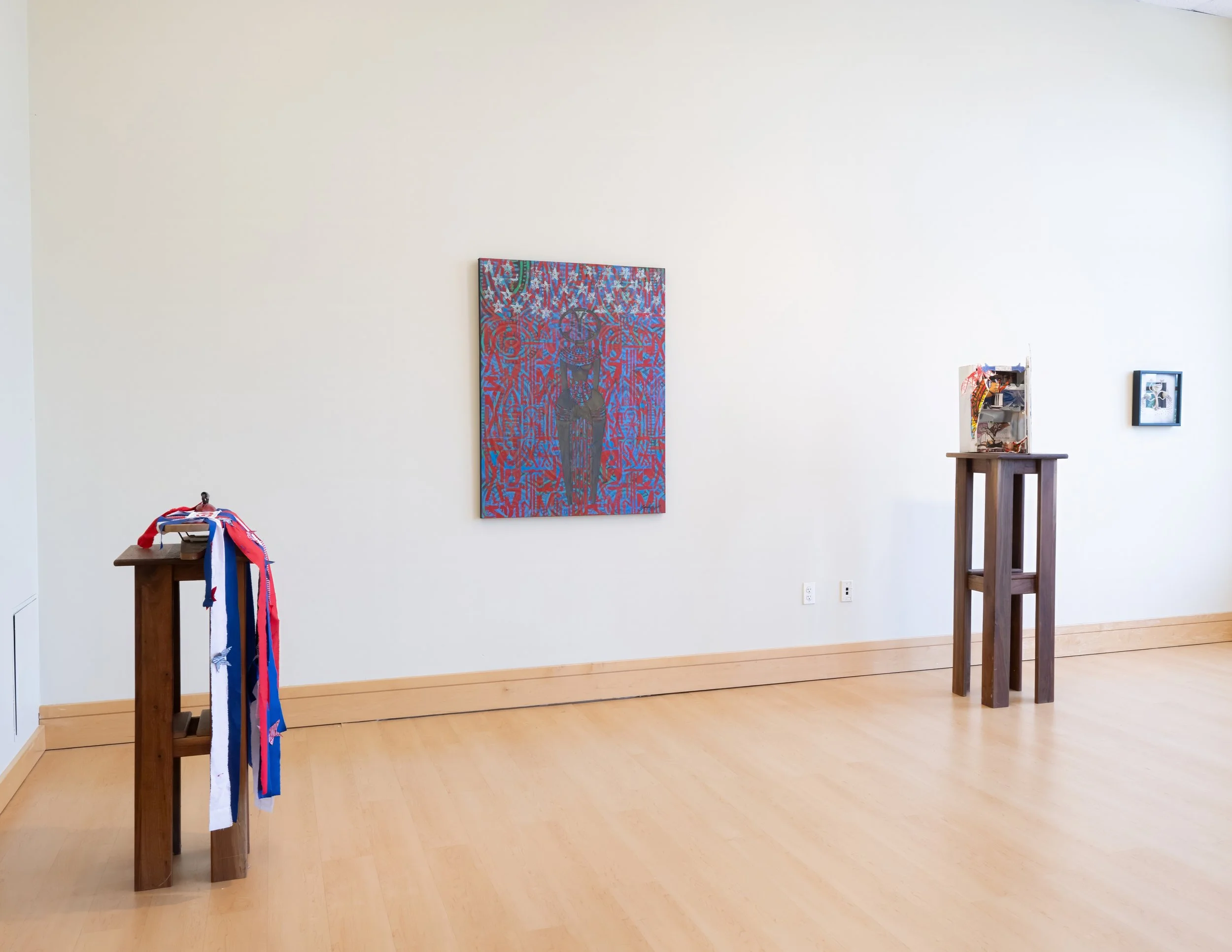 "Liberty is Black" mixed media on canvas. It combines the elements of layering, collage, stenciling, metallic foils, and plaster to reimagine the American flag. It's a visual story depicting how enslaved and free Black women advanced liberty by testing it's boundaries and scope. "Liberty is Black" pays homage to Elizabeth Freeman, the first enslaved Black woman to file a lawsuit for freedom and win in the state of Massachusetts in 1783. Motivated by the declaration, "mankind in a state of nature are equal, free, and independent of each other, and have the right the undisturbed enjoyment of their lives, their liberty and property". Elizabeth Freeman's belief in liberty and bravery is the legacy that Black women continue to uphold and push today.